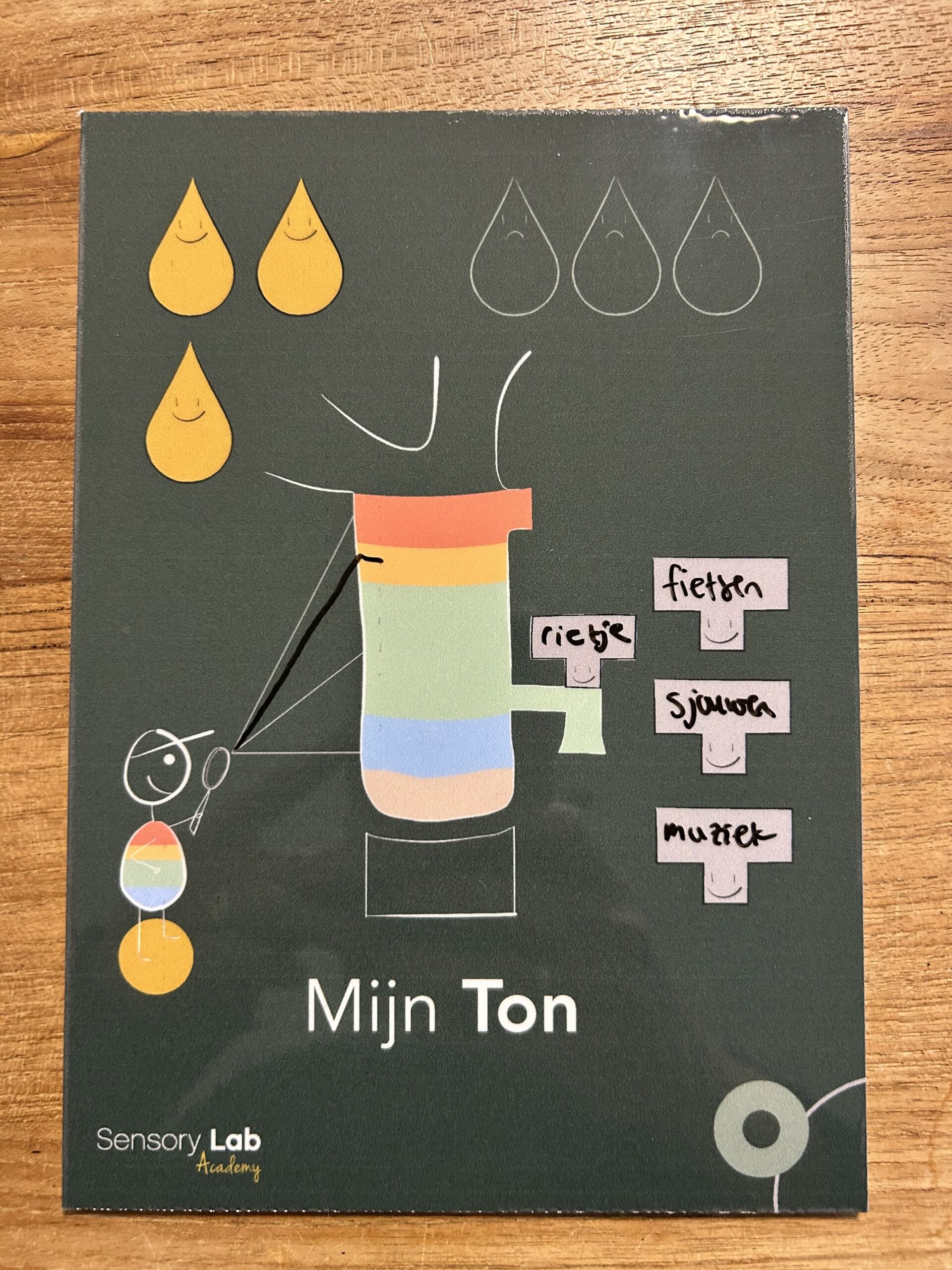 Op veler verzoek hebben een whiteboard ‘Mijn Ton voor thuis’ gemaakt. Op dit whiteboard staat de Regenton met de Ontrafelaar, druppels en kraanknoppen. Deze is bedoeld om thuis, in de klas of waar dan ook samen met een client zijn of haar arousal in beeld te brengen samen met de regulatoren. Je kunt hem gebruiken in plaats van een zelfgemaakte druppelmeter.